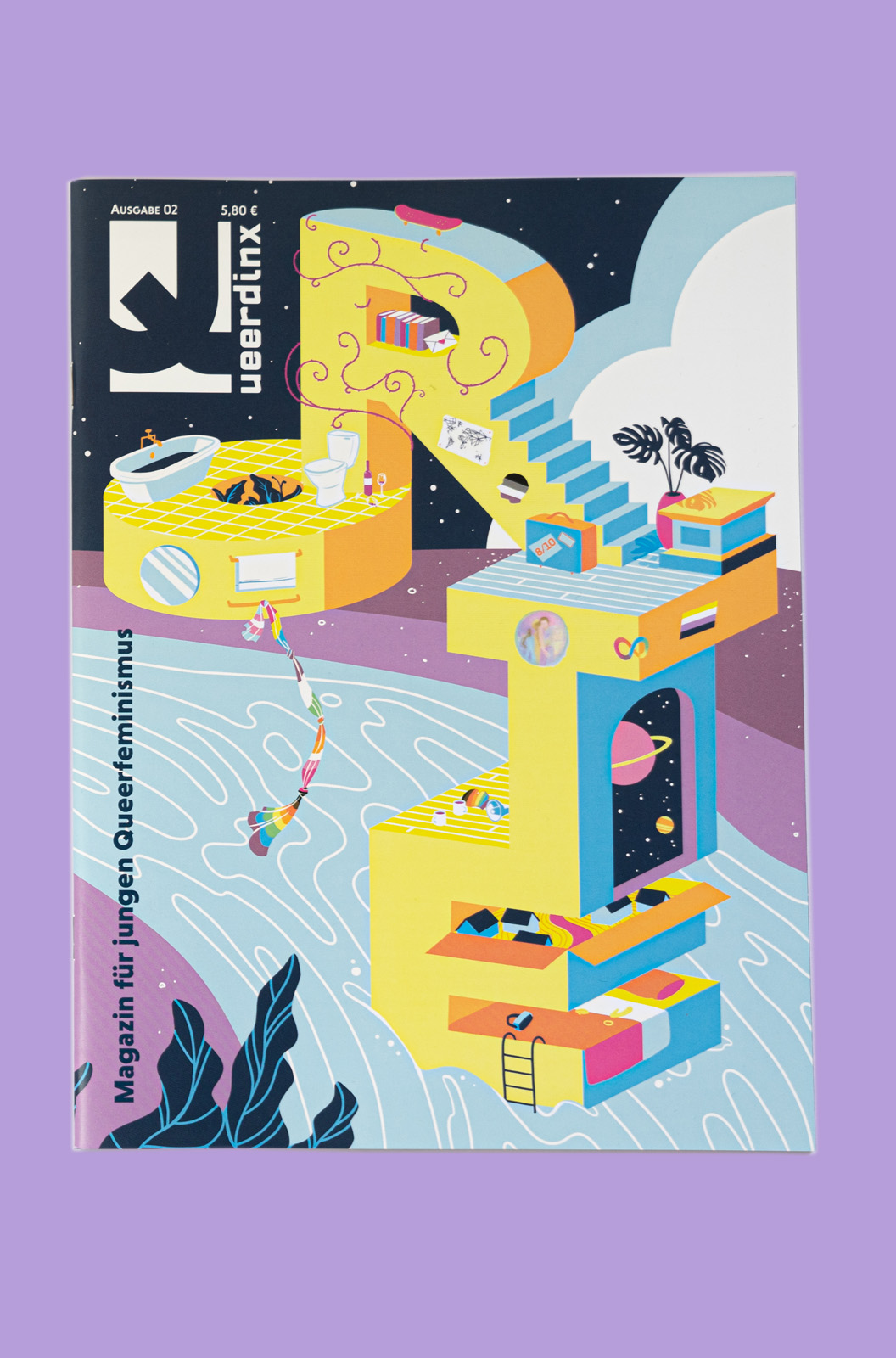 Die zweite Ausgabe Queerdinx stand unter dem Thema “Orte”. Orte können Räume sein, ein Nährboden für Safer Spaces, den Platz, den Du Dir einräumst, und das Verorten Deiner Selbst. Die 24 Beiträge in diesem Magazin erkunden ganz individuelle Zugänge zu diesem Begriff und finden dafür die unterschiedlichsten Formen. Einen Comic über “das Örtchen”, ein Zine darüber, wie auch Freund:innen ein Safer Space sein können, Illustrationen und Gedichte, aber auch Artikel über Erinnerungsorte der queeren Community — das alles und mehr findest du auf den 60 Seiten dieser Ausgabe von Queerdinx.